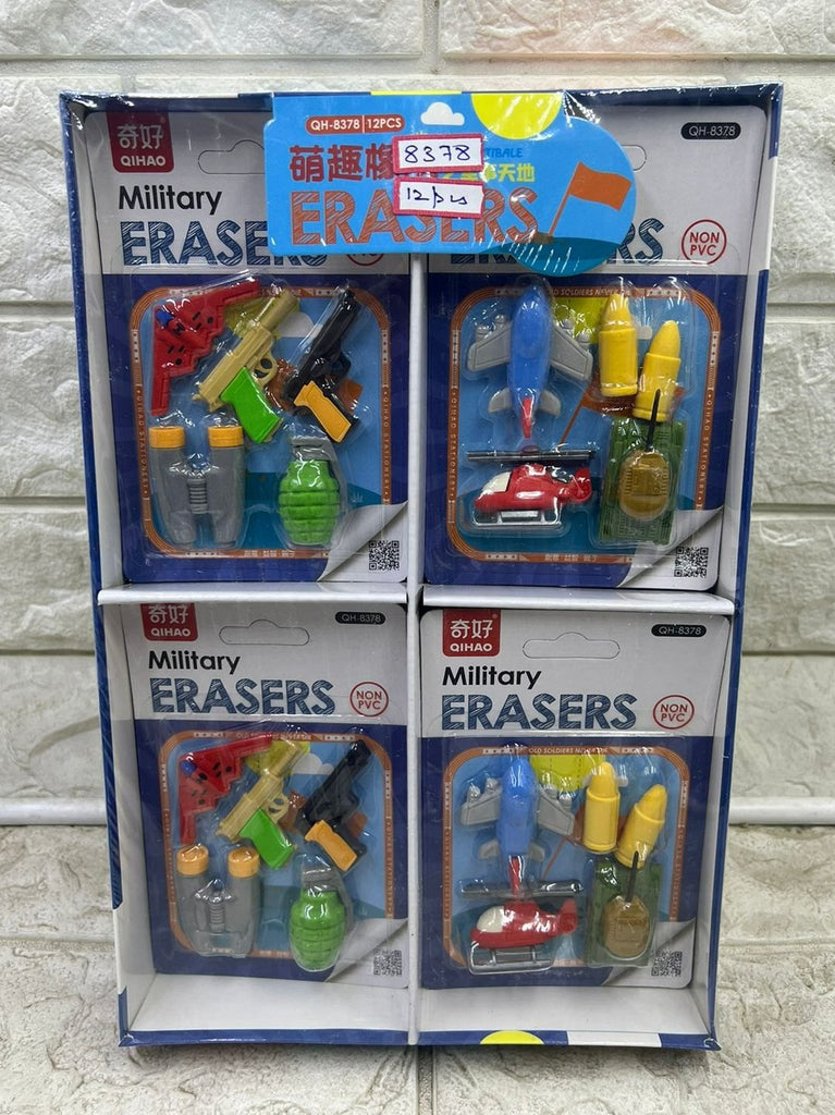 Premium quality erasers featuring Gun, pistol , grenades , binoculars etc.
